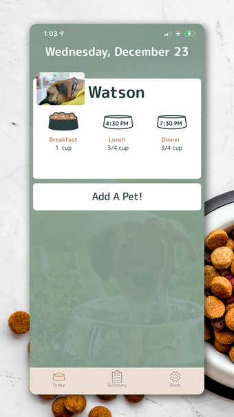 Another useful feature of the app is the Summary tab, which allows you to review your pet's meals for the week. This ensures that no meal is missed and provides a comprehensive overview of their feeding routine.